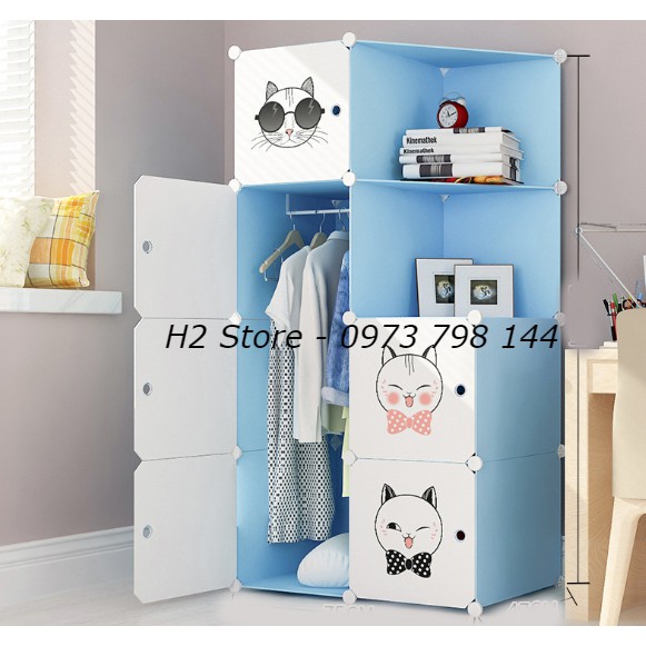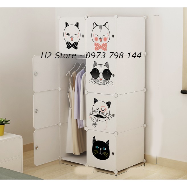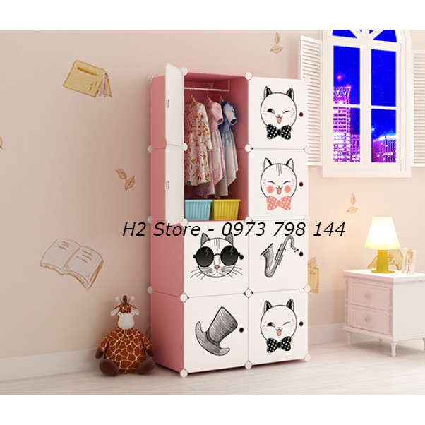 [MẪU ĐỘC] TỦ NHỰA LẮP GHÉP 8 Ô HÌNH MÈO MŨ DỄ THƯƠNG TREO ĐỒ ĐA NĂNG THÔNG MINH sâu 47cm