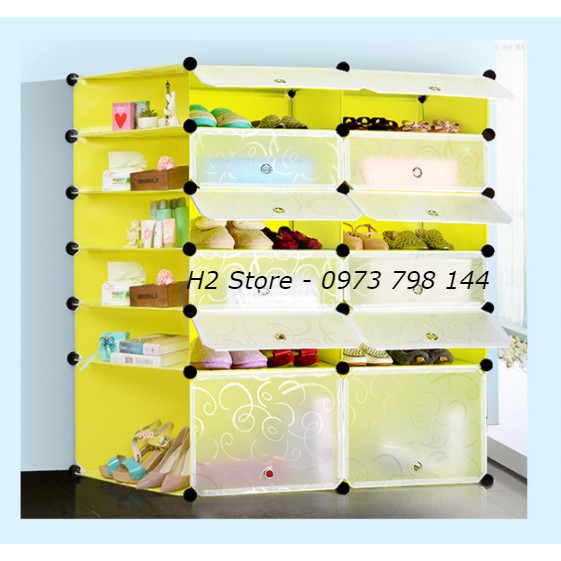 Giới thiệu [MẪU ĐỘC] - TỦ NHỰA LẮP GHÉP ĐỂ GIÀY ĐA NĂNG THÔNG MINH 2 Ô TO + 10 Ô NHỎ + 6 KỆ GÓC CỬA TRẮNG TRONG