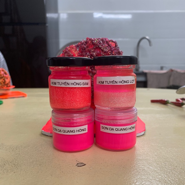 Nhà Cửa & Đời Sống > Dụng cụ & Thiết bị tiện ích > Sơn nhà cửa || Màu hồng dạ quang và kim tuyến hồng lợt ,đậmCòn hàng