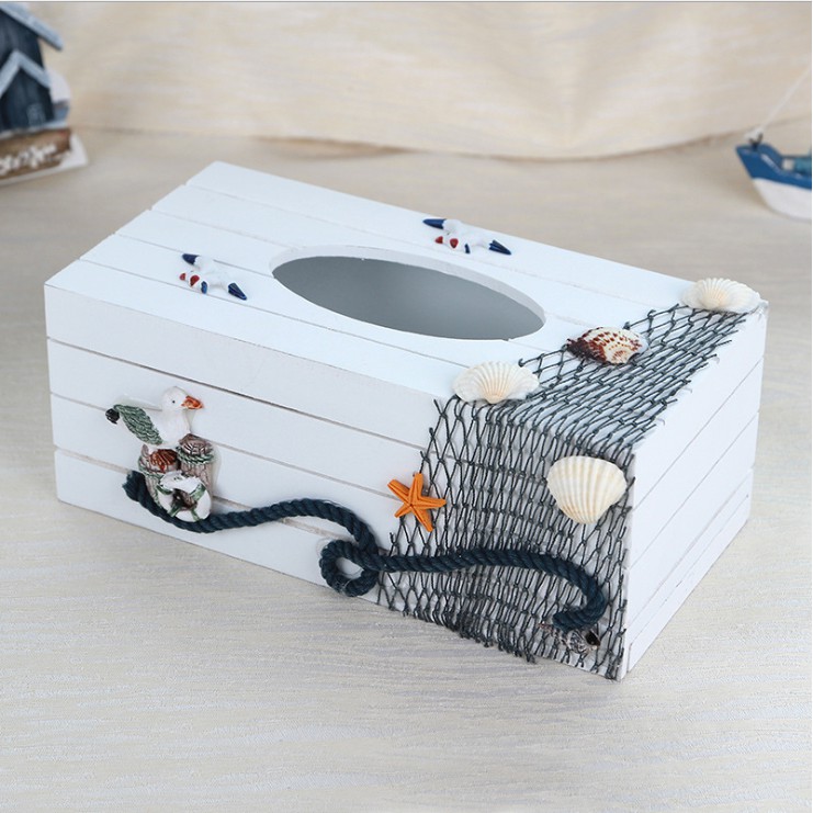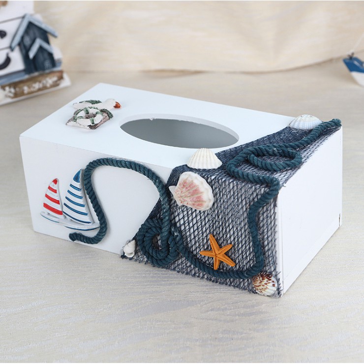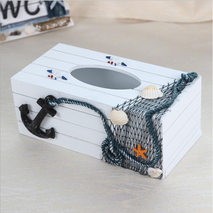Hộp đựng khăn giấy, giấy ăn theo phong cách Địa Trung Hải với các trang trí hình Hải Âu, Thuyền buồm, Sao biển, Hải đăng, Mỏ neo lớn....