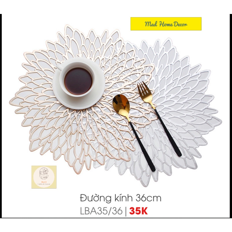 Ngoài tấm lót bàn ăn hình chữ nhật, còn có tấm lót bàn ăn hình tròn,...