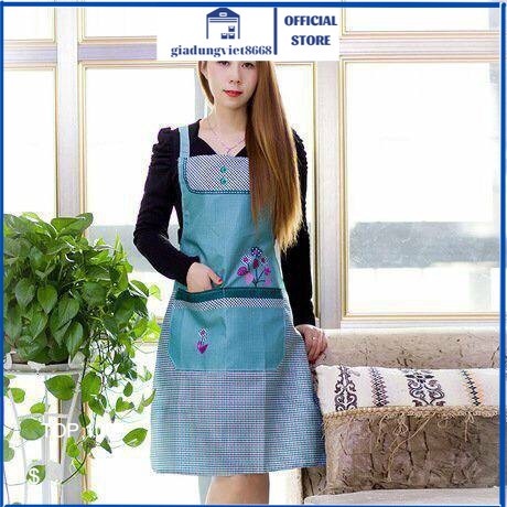 [Mẫu hót 2021] Tạp dề nhà bếp Mẫu tạp dề kẻ nhỏ kết hợp với hoa với chất liệu ít thấm nước, ngăn chặc việc thấm
