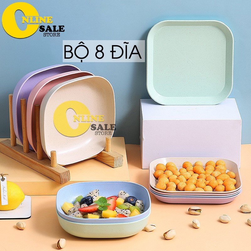 Nhà cửa & Đời sống > Bộ đồ bàn ăn > Dĩa || [MẪU HOT] Bộ 8 đĩa nhựa lúa mạch decor hình tròn, vuông. Đĩa bánh ngọt siêu xinhCòn hàng