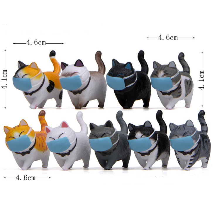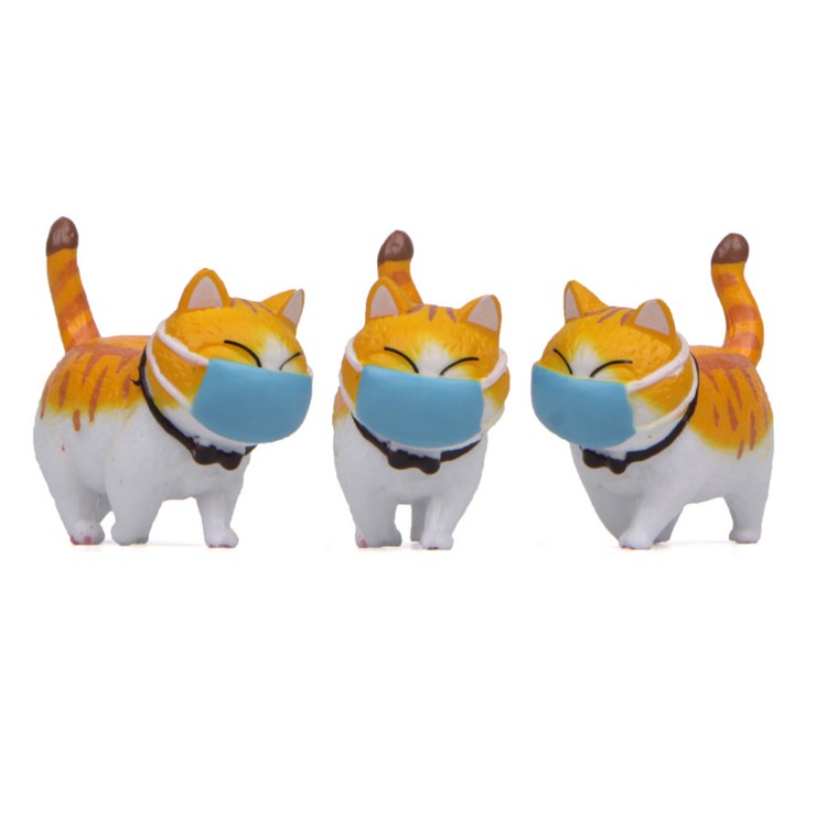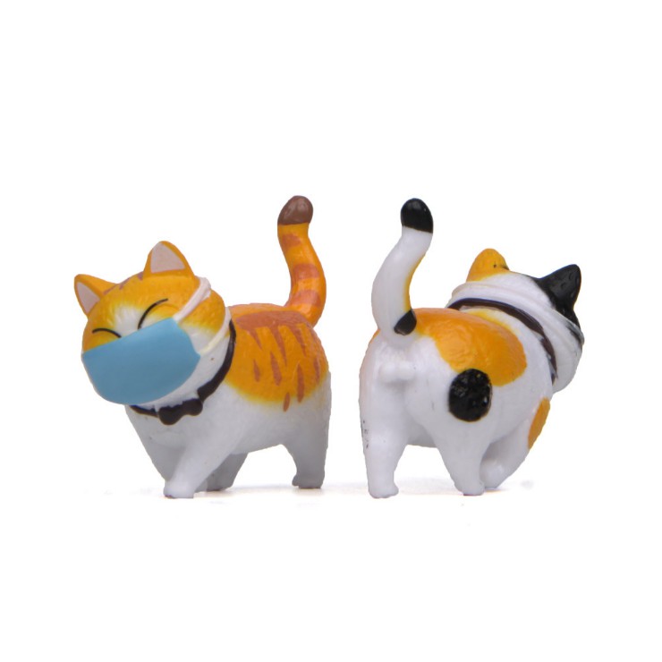 Mẫu mô hình mèo mập dễ thương ver 1 đeo khẩu trang dùng trang trí tiểu cảnh, terrarium, móc chìa khóa, DIY