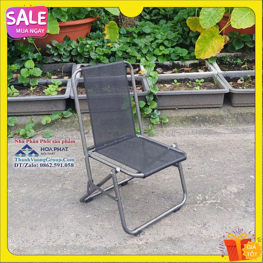 {Mẫu Mới 100%i} Ghế xếp cà phê sắt Lưng thấp khung sơn tĩnh điện lò xo (Vải Lưới) liền Màu Bông Bạc Đen
