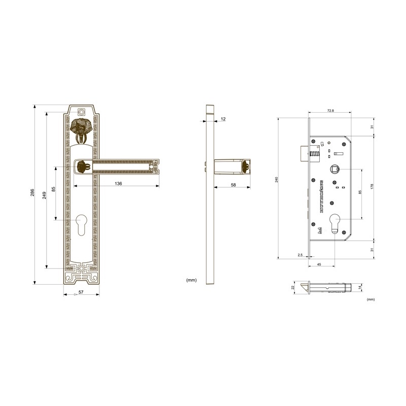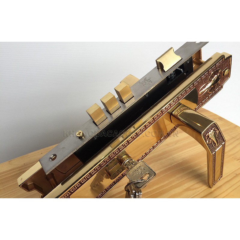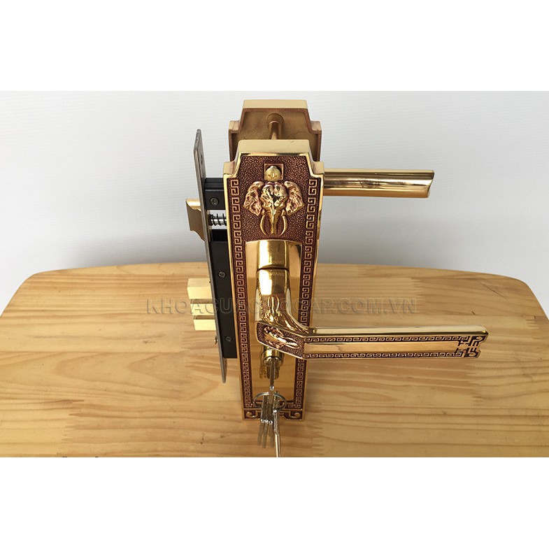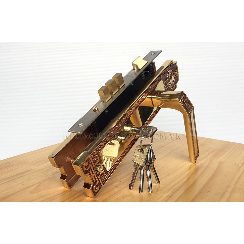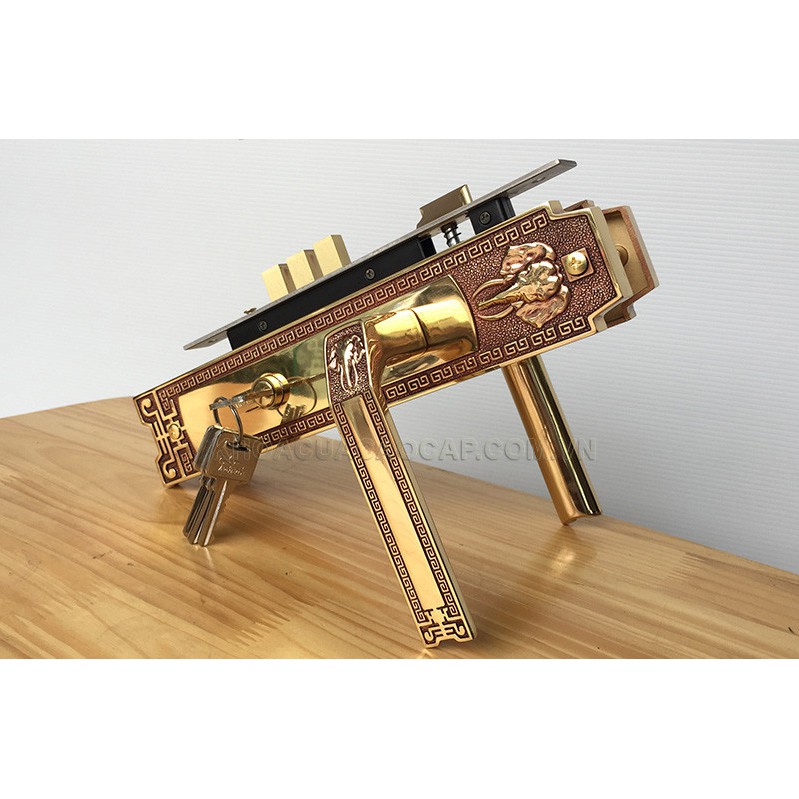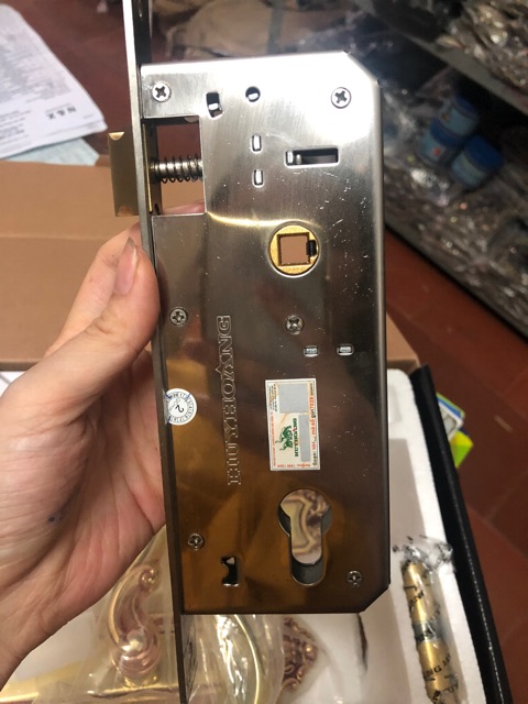 Thân Khóa: Thân khóa loại to với chốt vuông và chốt vát bằng đồng