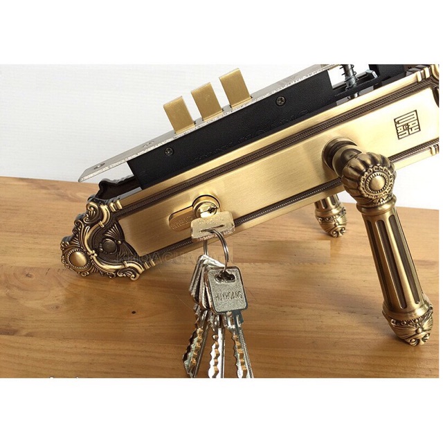 Thân Khóa: Thân khóa loại to với chốt vuông và chốt vát bằng đồng