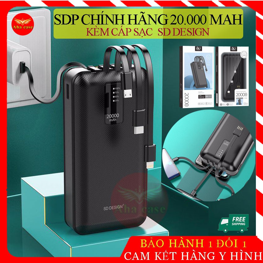 Giới thiệu [Mẫu Mới 2022] Pin Sạc dự phòng G02 chính hãng 20,000mAh SD Design kèm 3 dây sạc, cáp sạt cổng USB, bảo hành 1 năm
