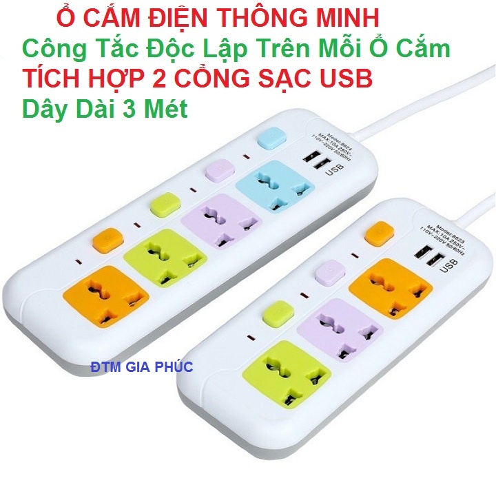 Thiết Bị Điện Gia Dụng > Mạch điện & Phụ tùng > Ổ cắm điện & Dây nối || [Mấu Mới 2022] Ổ Cắm Điện Đa Năng Nhiều Ổ Điện Và 2 Cổng USB, Dây Dài 3 MétCòn hàng