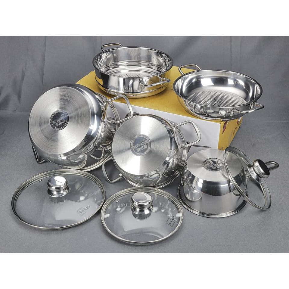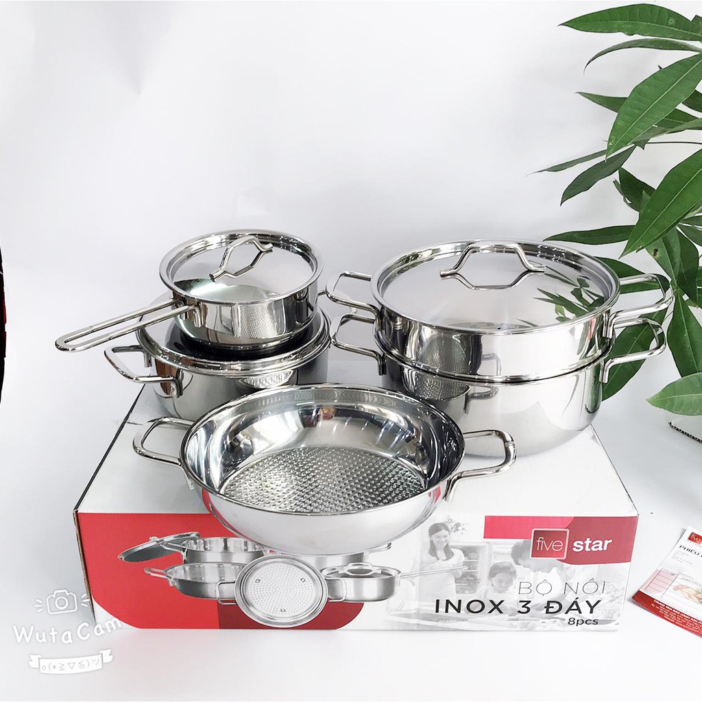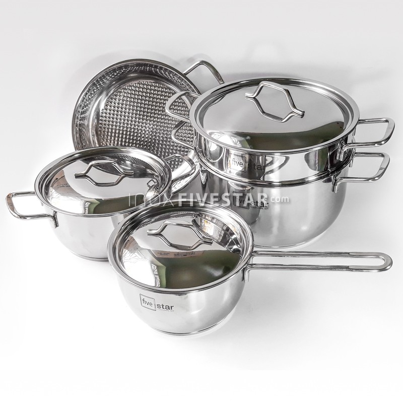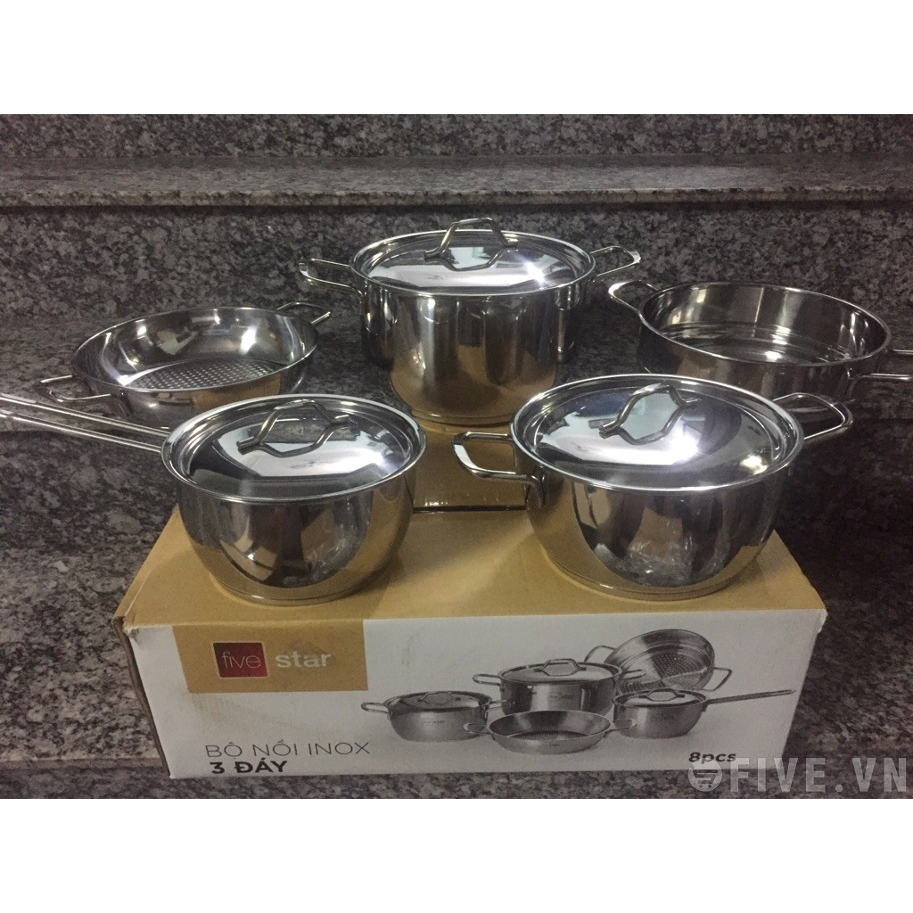 Nhà cửa & Đời sống > Dụng cụ nhà bếp > Nồi || (mẫu mới) Bộ Nồi Inox 5 Chiếc Fivestar 3 đáy cao cấpCòn hàng
