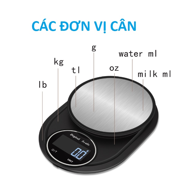 - Nhiều Đơn vị đo nhà bếp: g, oz, lb, tl, kg, ml nước, ml sữa
