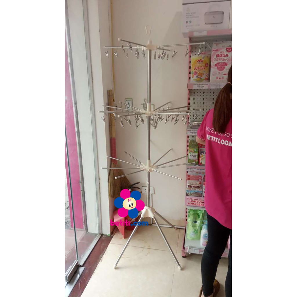 - Cây phơi đa năng với 3 tầng xoay 360* sẽ là giải pháp hoàn hảo nhất cho việc treo đồ trong nhà, nhất là những món đồ nhỏ như quần áo trẻ em, quần chíp, tất, khăn... Đặc biệt ở chung cư, sân vườn nhỏ hoặc nhà có em bé mà sử dụng loại này thì tiện lợi cực kỳ ạ