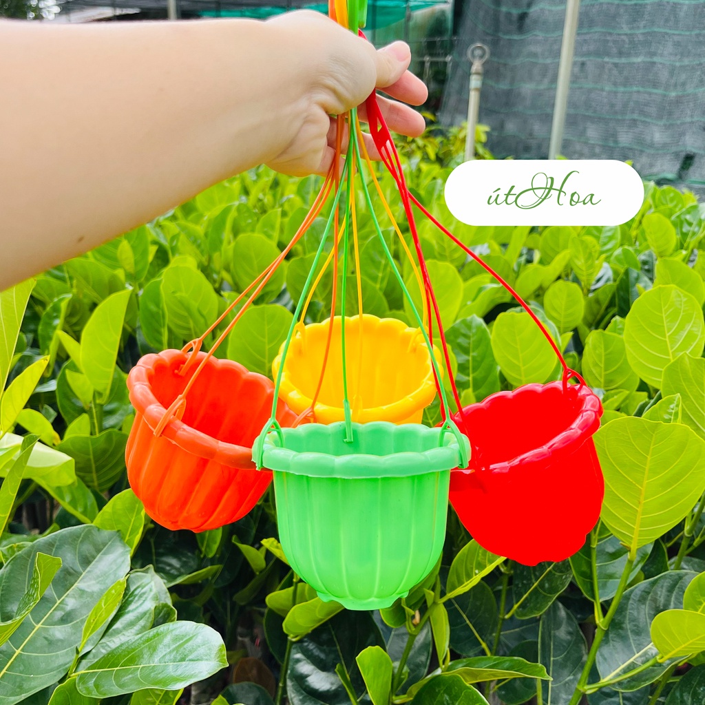 Chậu treo bí (kèm sẵn dây treo)Kế thừa mẫu chậu bí đã được đông đảo nhà vườn yêu thích từ trước tới nay, công ty đã cho ra mắt mẫu chậu size nhỏ nhắn hơn, vô cùng dễ thương.