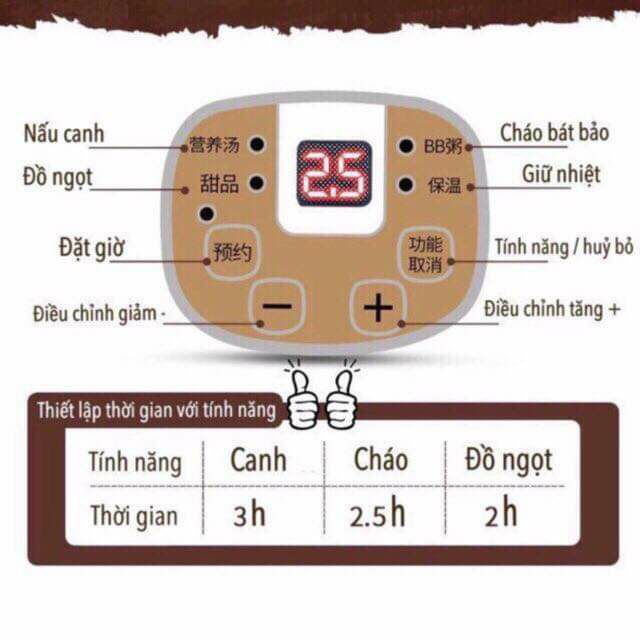 ➕ Tính năng đặt hẹn giờ ưu việt: chỉ cần lựa chọn chế độ nấu là xong. Bạn không cần bận tâm hay lo sợ cạn, cháy khi nấu! Tính năng linh động khi đã kết thúc giờ đặt nấu, nồi sẽ tự động chuyển sang chế độ giữ ấm trong vòng 24h.