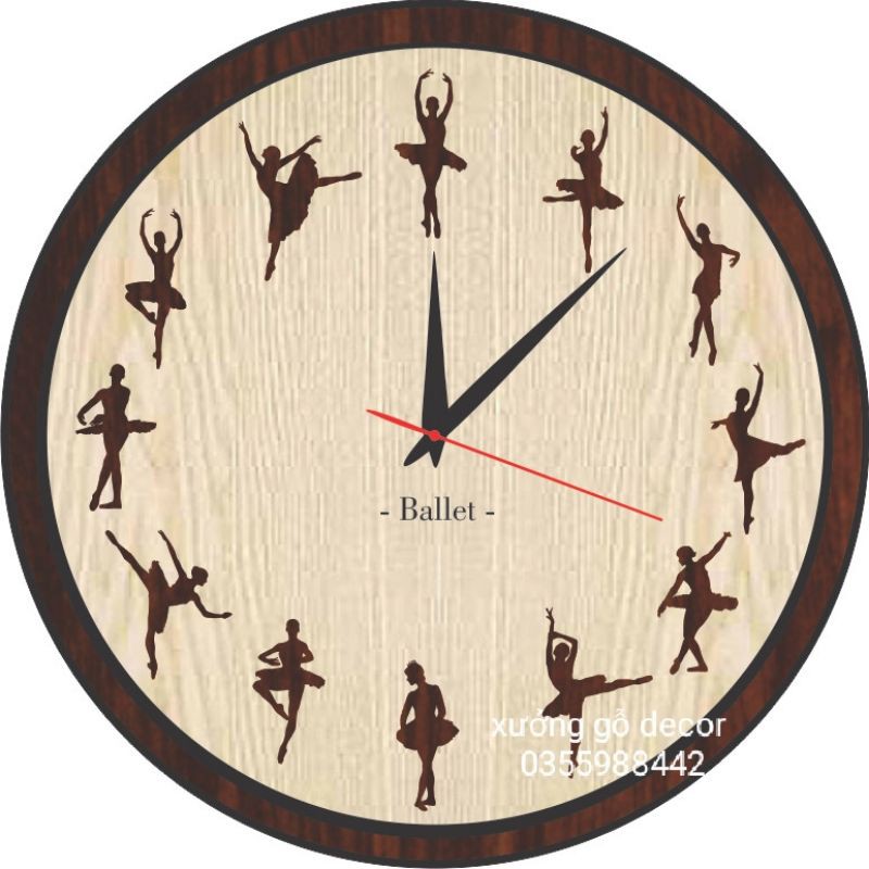 [ Mẫu Mới ] Đồng Hồ Treo Tường Bằng Gỗ Hoạ Tiết Cô Gái Múa Ballet