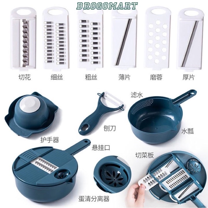 Đặc điểm nổi bật:• 11 chức năng: Thau, rổ, nghiền gừng tỏi, lược trứng, thái lát, bào sợi to nhỏ, bào khoanh.