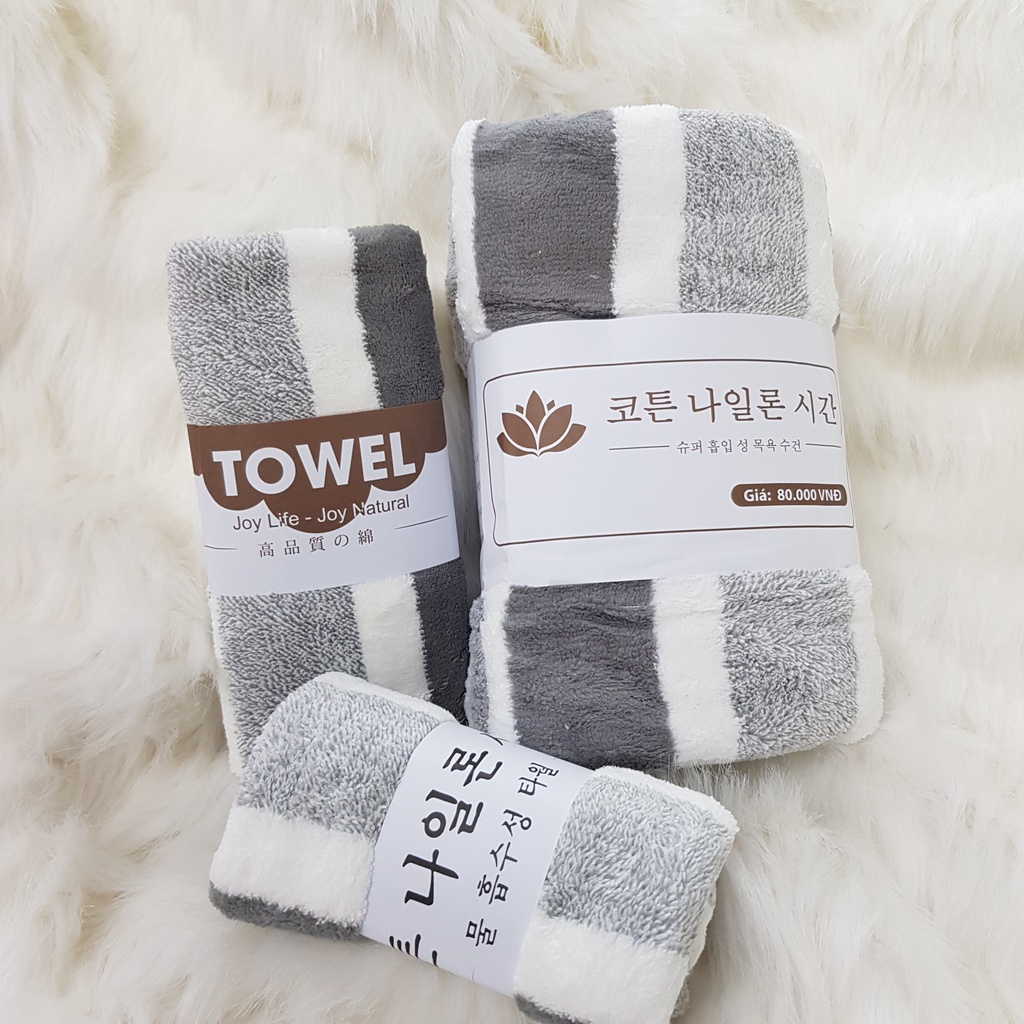 - Khăn tắm sợi bông Hàn Quốc được sản xuất theo công nghệ đặc biệt với chất liệu an toàn tự nhiên có công dụng giúp tẩy sạch và loại bỏ mọi bụi bẩn, đồng thời tạo bọt, hút nước tốt mà vẫn mềm mại, thoải mái khi sử dụng.