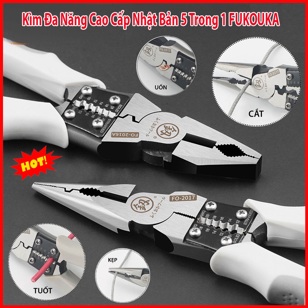 ⚡Mẫu Mới⚡Kìm điện, kìm nhọn, kìm đa năng cao cấp Nhật Bản 5 trong 1 FUKOUKA 8inch/220mm (Kẹp-Cắt-Uốn-Cuộn-Tuốt dây)------------------------------------------