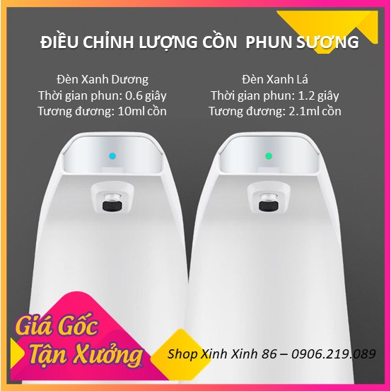 - Bấm nút khởi động sau lưng thân máy sau đó đưa tay vào máy để thử lượng cồn phun ra nếu muốn điều chỉnh lượng cồn thì bấm tiếp nút nguồn đèn cảm ứng chuyển màu xanh dương và xanh lá mỗi màu là biểu thị lượng cồn phun ra khác nhau đèn xanh dương tương đương thời gian phun 0.6’ là 10ml cồn. Đèn xanh lá cây tương đương: 1.2’ là 2.1ml cồn phun ra