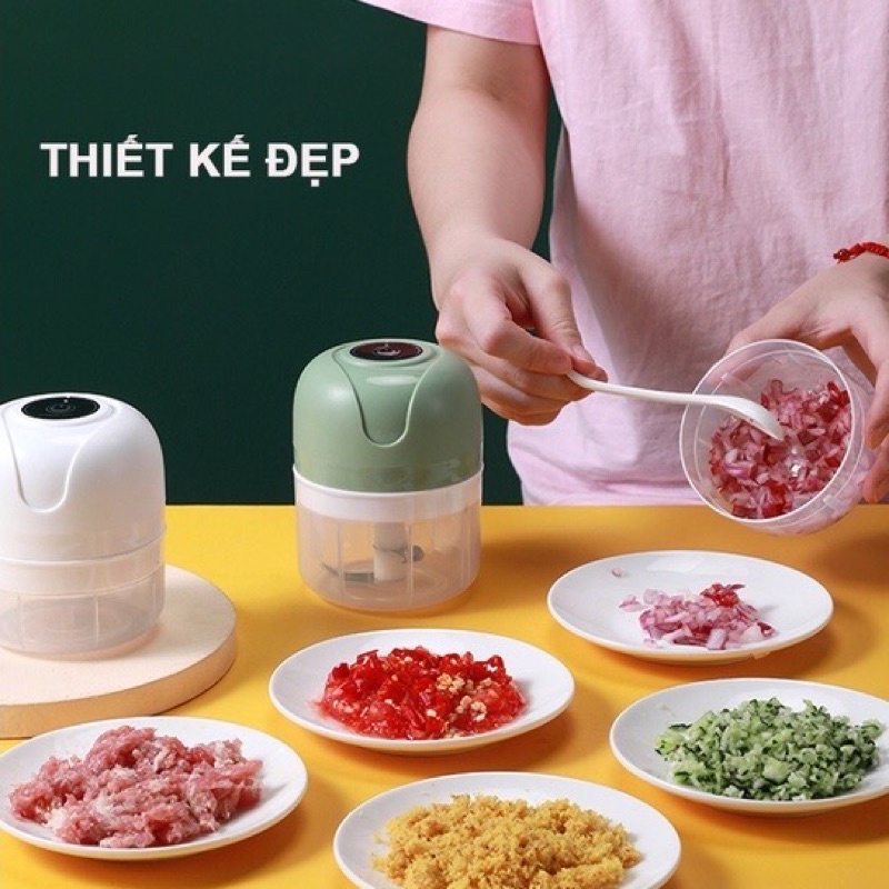Máy xay tỏi ớt sạc điện mini loại tốt, máy xay hành xay thịt làm đồ ăn dặm cho bé, máy say thịt phẩm đa năng thiết kế gọn nhẹ tiện lợi- Thiết kế nhỏ gọn sang trọng dễ dàng mang theo