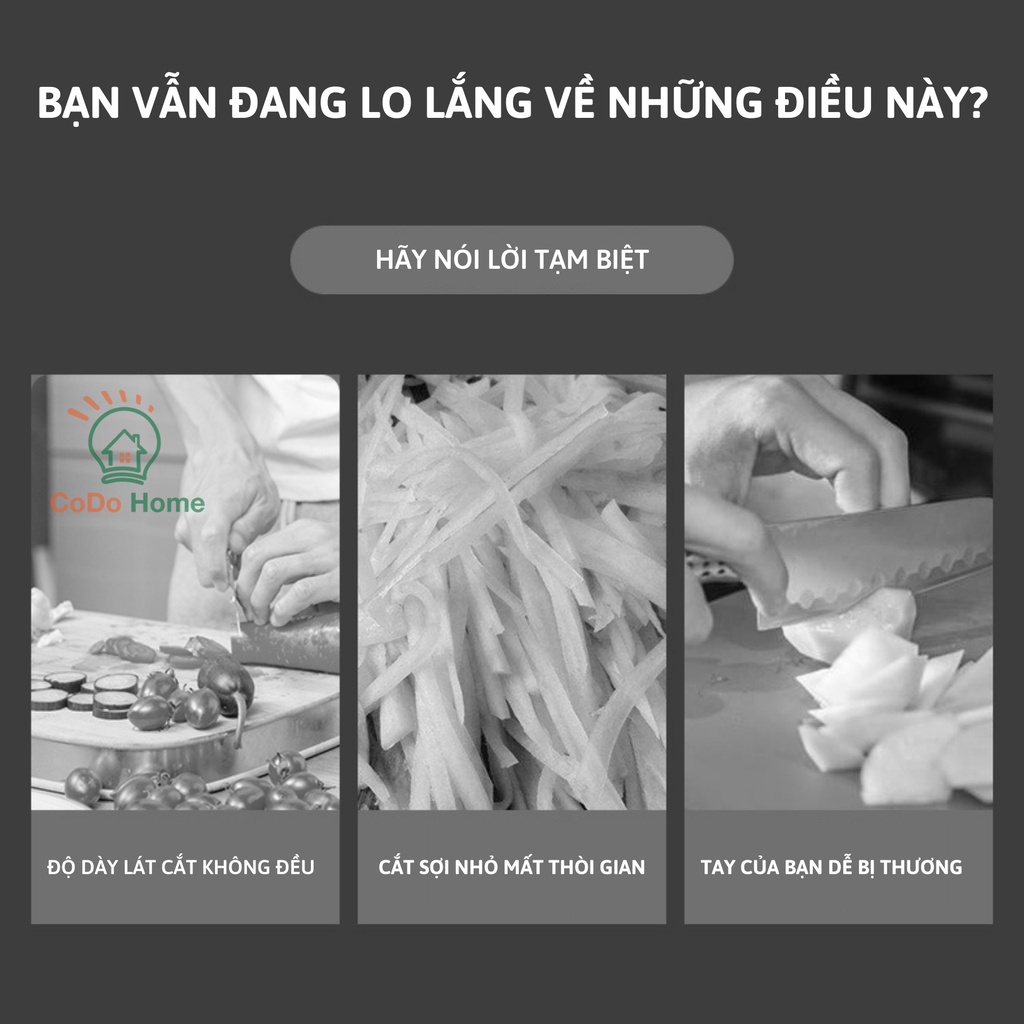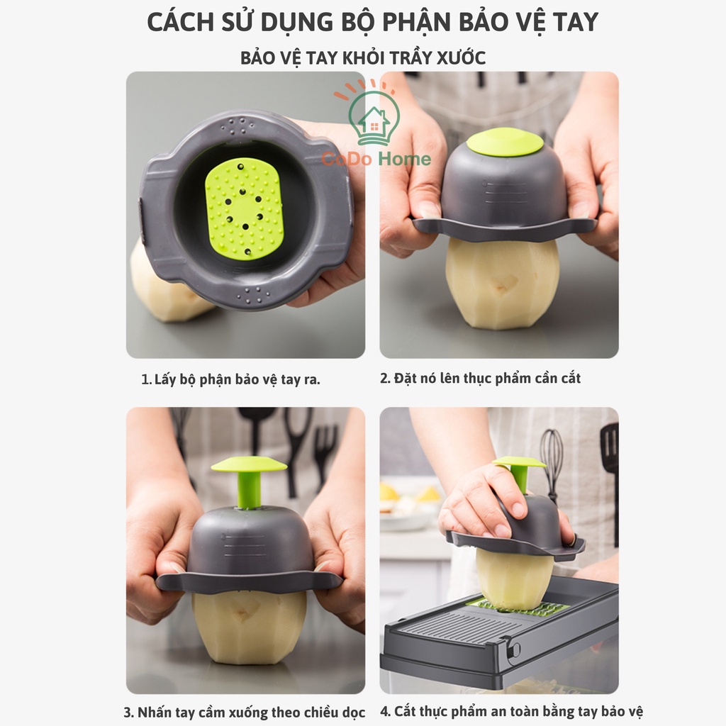 - với thiết kế thông minh, nhỏ gọn và nhiều chức năng gồm: tay cẩm chống trượt, đệm chống trượt, rổ thoát nước, những lưỡi dao sắc bén không gỉ