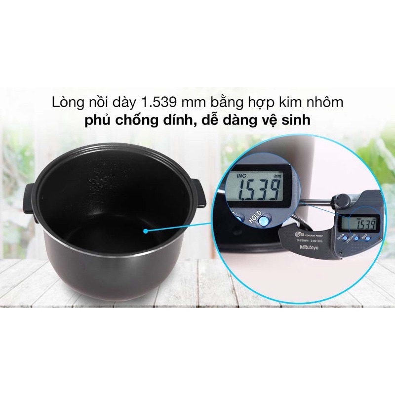 - Lòng nồi được làm bằng hợp kim nhôm chống dính dễ vệ sinh. Nồi có tay cầm chống nóng, không bị bỏng khi chạm vào, dễ dàng di chuyển. Công suất của nồi là 980W đảm bảo hạt cơm được nấu chín đều và nhanh chóng, tiết kiệm tối đa thời gian của bạn. Sau khi cơm được nấu chín, nồi cơm điện tự chuyển sang chế độ giữ nóng tiện lợi trong thời gian dài, vừa tiết kiệm được điện năng, vừa mang đến những hạt cơm nóng dẻo và thơm ngon cho gia đình.