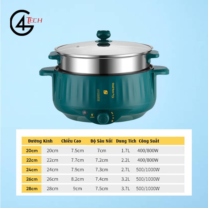 [MẪU MỚI] Nồi điện đa năng, Bếp điện chiên xào, lẩu hấp phủ lớp chống dính công nghệ Nhật Bản, Tiết kiệm điện