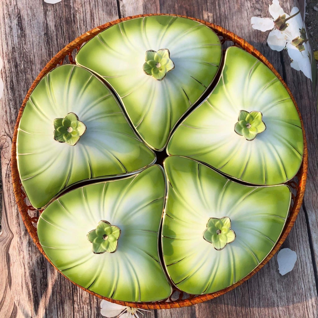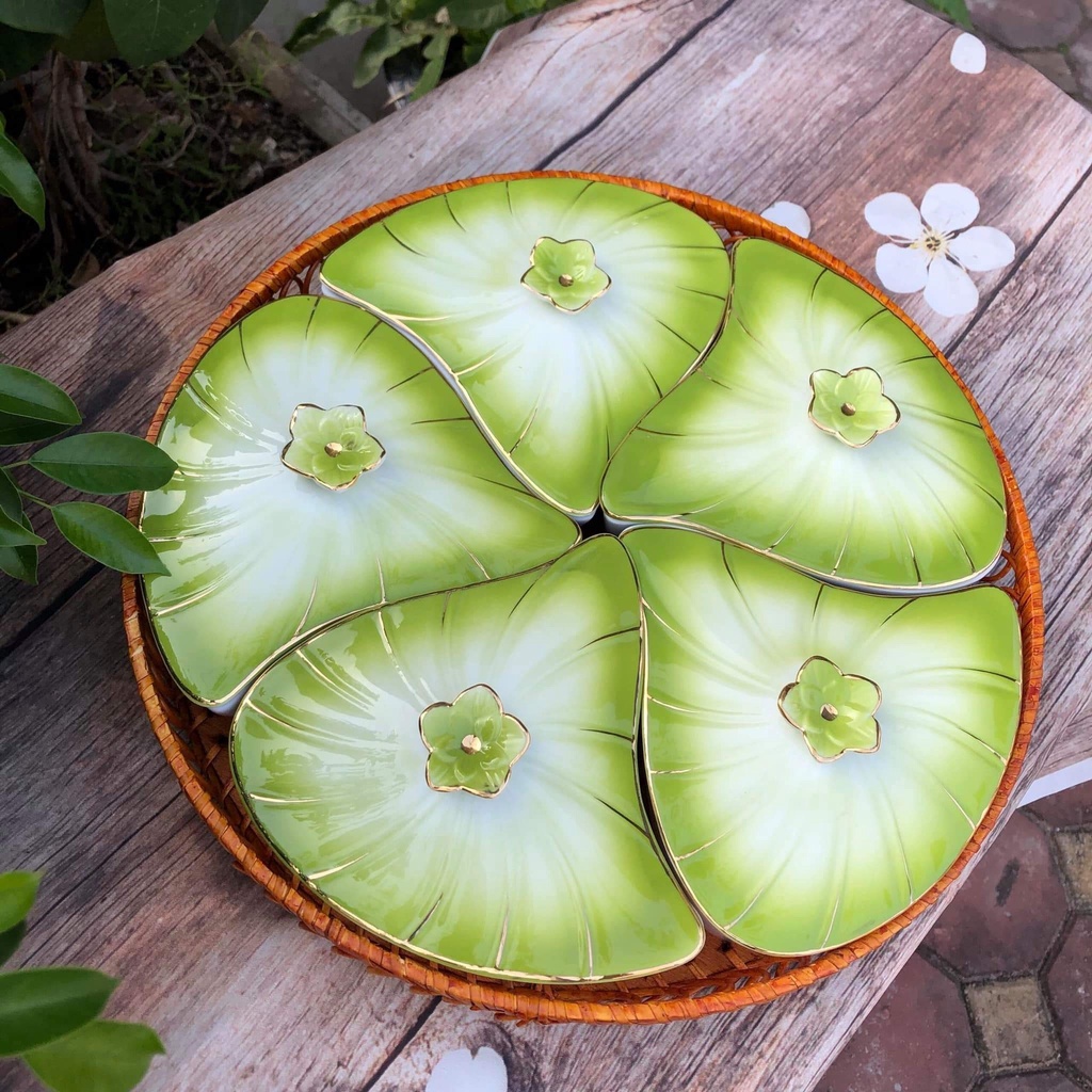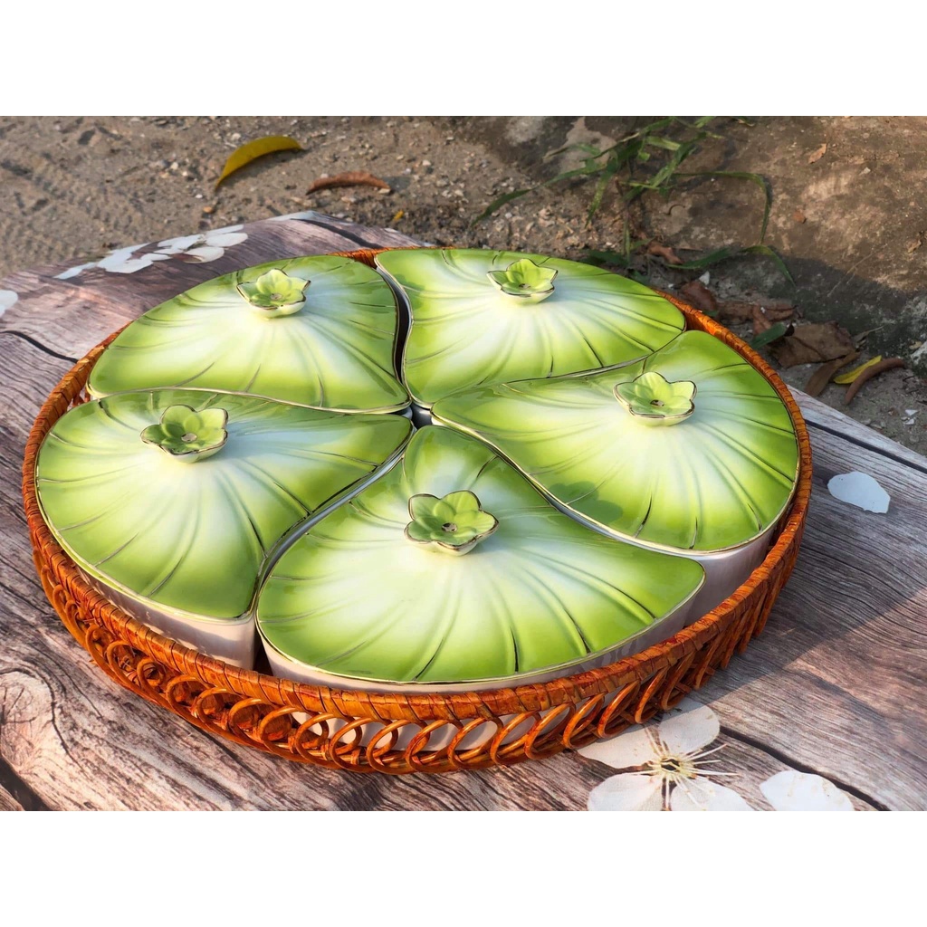 Nhà cửa & Đời sống > Bộ đồ bàn ăn > Khay, tấm lót bàn ăn || Mẫu mới ra lò nóng hổi vừa thổi vừa xem. Mẫu khay mứt 'Lá sen' mới toanh ra mắt năm nay của nhà em đây ạCòn hàng