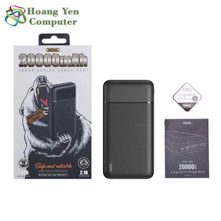 Giới thiệu [MẪU MỚI] Sạc Dự Phòng Remax RPP-166 20000mAh Lõi Polymer 2 Cổng Sạc Vào, 2 Cổng Sạc Ra - BH 1 Năm - Hoàng Yến Computer