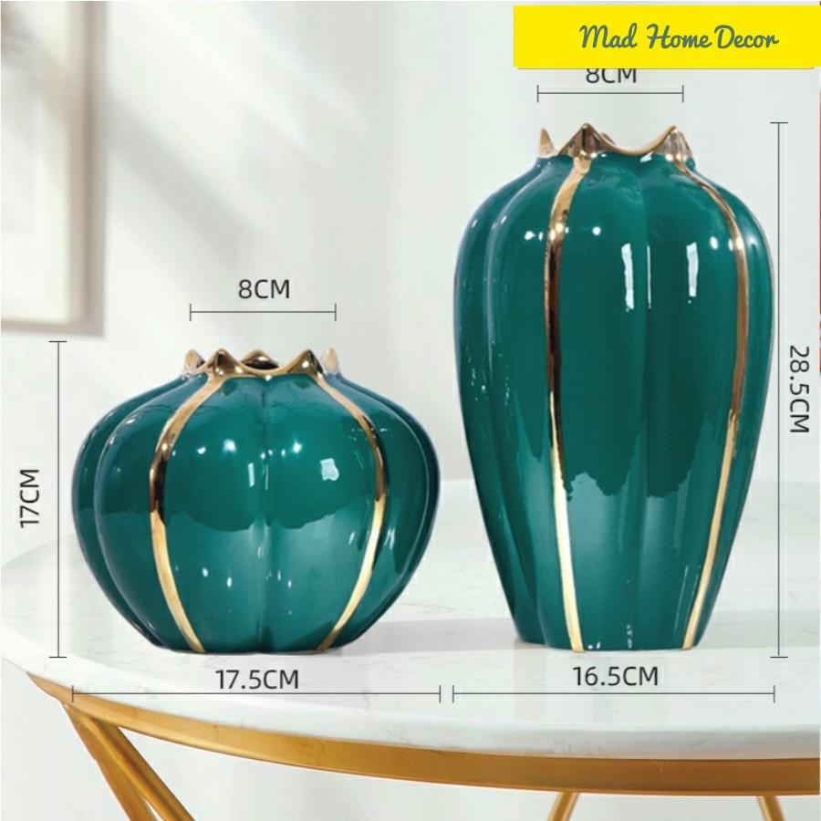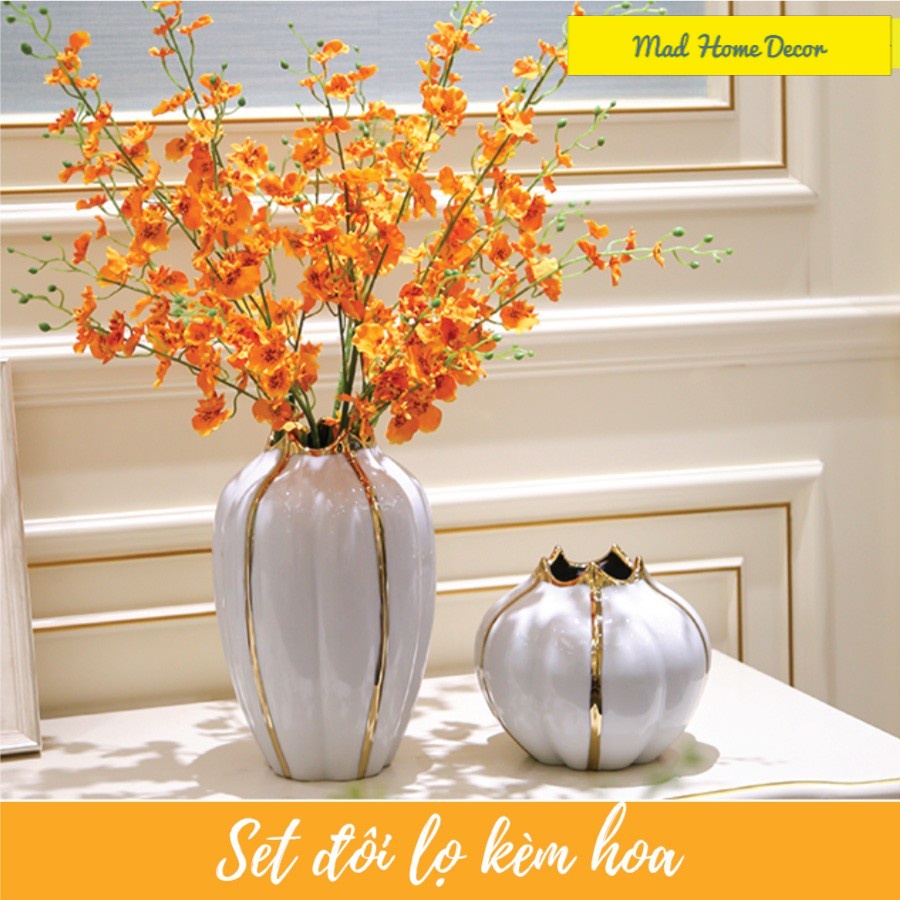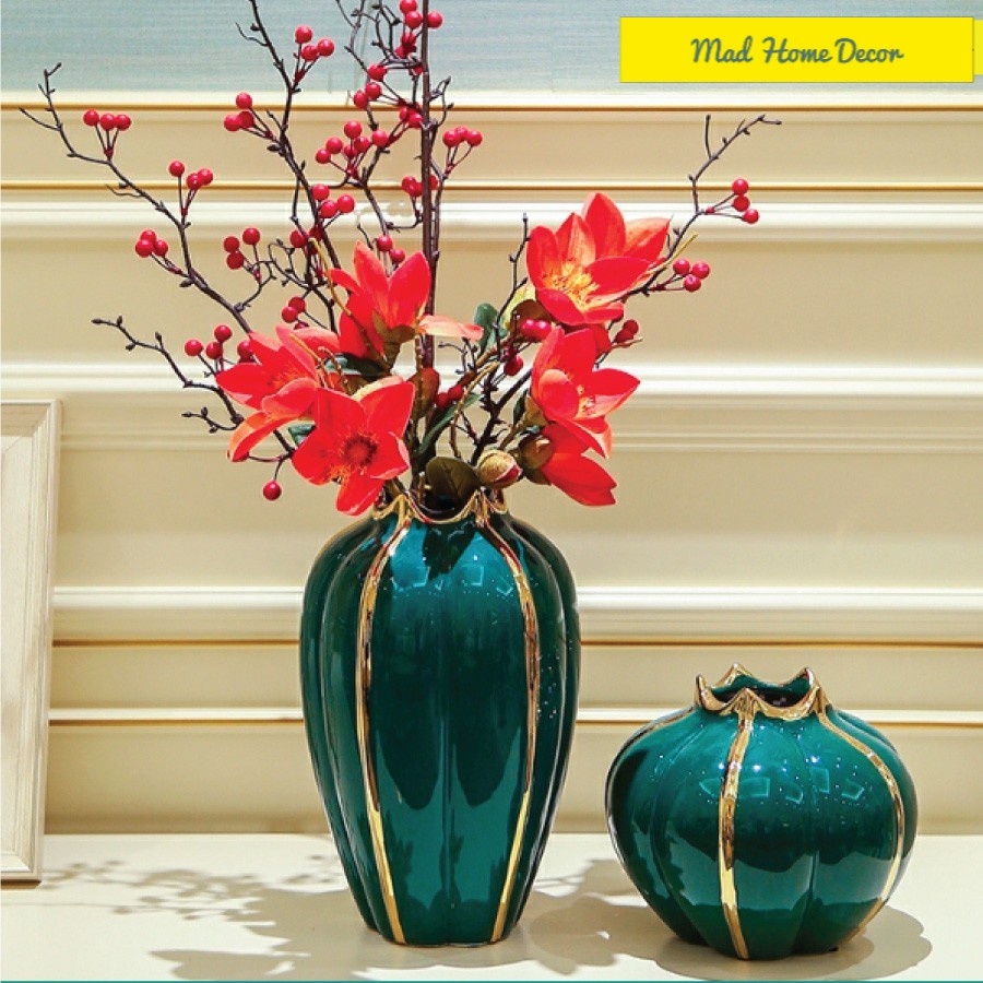 [Mẫu Mới Sẵn Hàng]Set 2 Lọ hoa bình hoa xanh/trắng viền vàng decor cao cấp