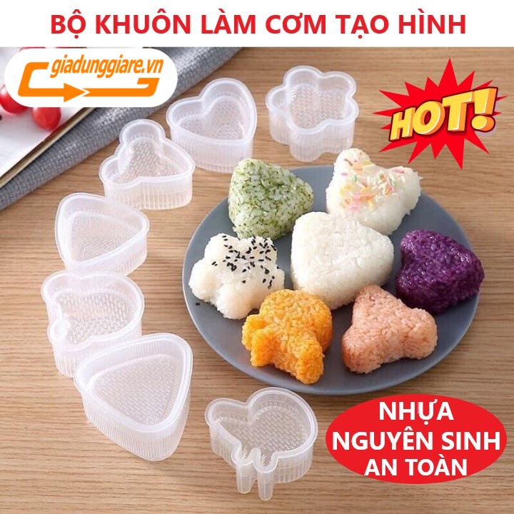 Giới thiệu ( Mẫu mới ) SET 07 KHUÔN CƠM BENTO ép tạo hình cơm nắm Sushi Origini mẫu đẹp nhựa nguyên sinh an toàn thực phẩm cho bé