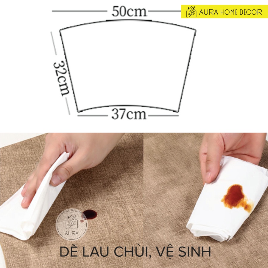 Mẫu lót bàn ăn cho các mẫu bàn tiệc tròn, chất liệu PVC dày dặn dễ dàng lau chùi, vệ sinh, đặc biệt không thấm nước.Kích thước: đáy trên 50cm, đáy dưới 37cm, chiều ngang 32cm