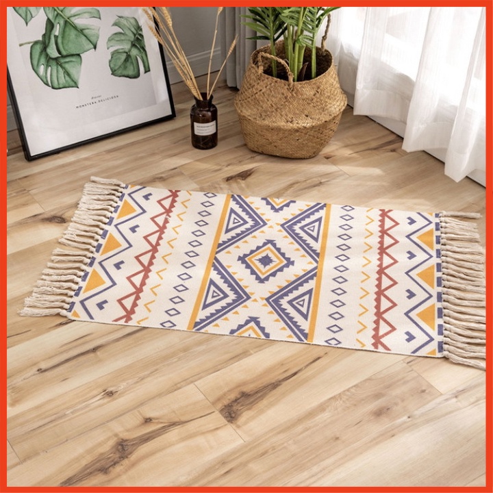 ✔ Thảm được dệt bằng vải cotton thấm hút cực tốt, đem đến sự gọn gàng cho căn phòng của bạn
