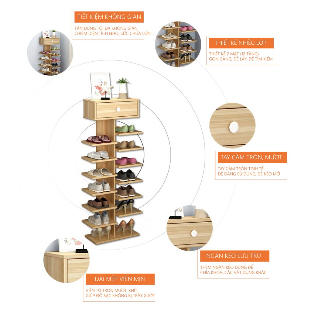 [Mẫu Mới – Thêm ngăn tủ] Kệ gỗ để giày dép 12 tầng tiết kiệm không gian, bền đẹp