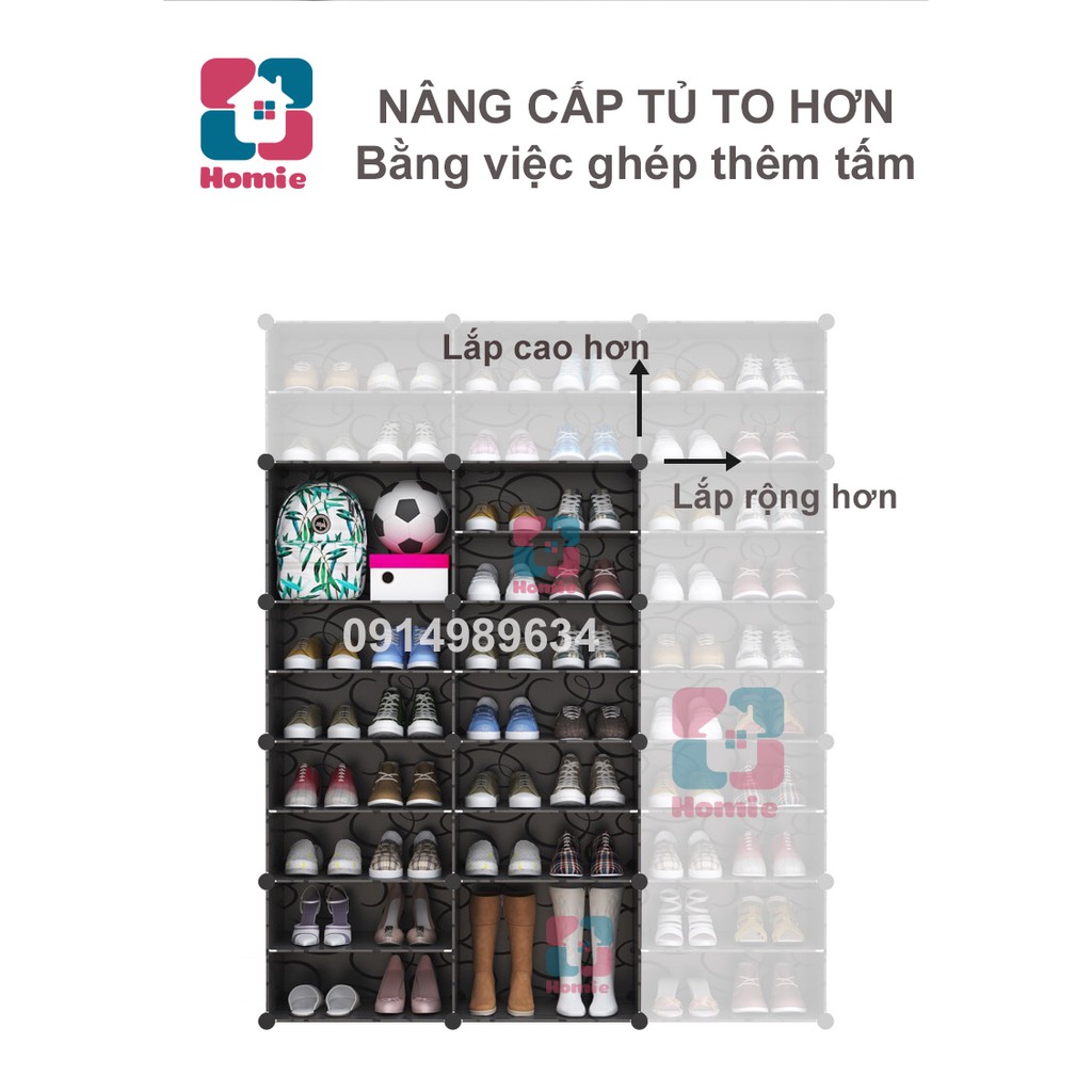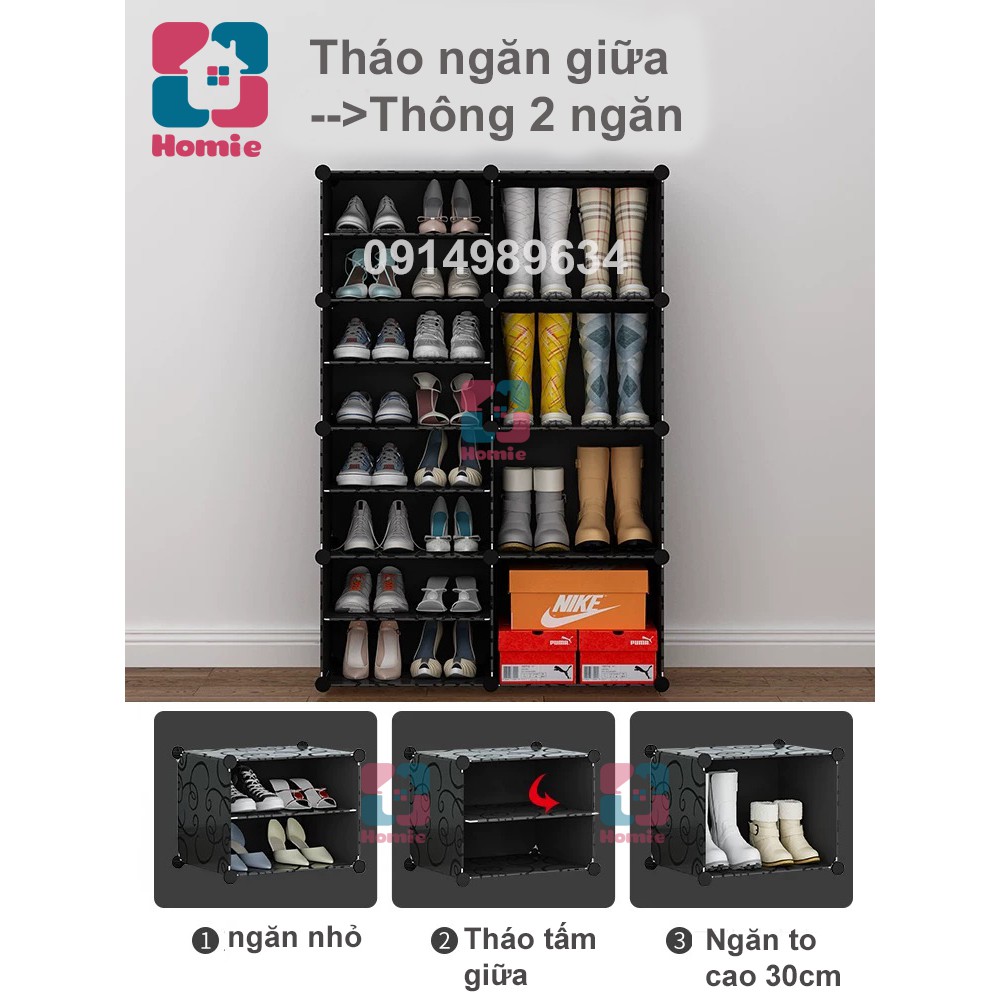 1ô kích thước: 15x32x42cm. Mỗi ngăn để được 2 đôi giày, tổng 8 ngăn giày 1 ngăn bốt để 16đôi giày và 2 đôi bốt. CÔNG TY LÀM ĂN UY TÍN TRÊN 7 NĂM. GIÁ RẺ VÔ ĐỊCH DO CÔNG TY NHẬP KHẨU SỐ LƯỢNG LỚN KHÔNG QUA TRUNG GIAN. HÀNG DÀY DẶN TỐT NHẤT THỊ TRƯỜNG, đã qua kiểm nghiệm chất lượng của Hải QuanBẢO HÀNH: 1 NĂM CHÍNH HÃNG, LỖI ĐỔI MỚI với từng linh kiện nhỏ nhất.