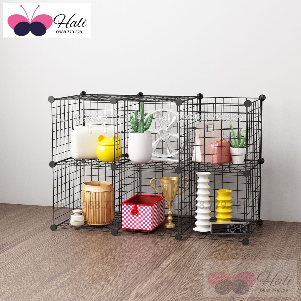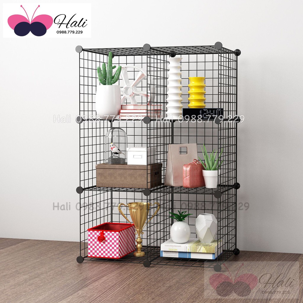 Tủ lưới sắt lắp ghép đa năng hiện đại để sách, đồ dùng trang trí phòng làm việc 6 ôTỦ KỆ LƯỚI THÉP ĐA NĂNG: được làm từ các tấm lưới thép, mỗi ô của tủ 6 ngăn này có thể chứa được 20kg, cho phép bạn có thể đựng sách, giấy tờ, tài liệu, quần áo, chăn, khăn tắm, đồ chơi, túi xách, phụ kiện v.v KIỂU DÁNG HIỆN ĐẠI: Tủ lưới thép đa năng có kiểu dáng hiện đại, bảo đảm sẽ phù hợp với phần lớn không gian tại nhà hay tại văn phòng của bạn. Kiểu dáng mở cũng đảm bảo tối đa cho việc thông gió cũng như bảo đảm với một cái liếc mắt bạn có thể quan sát được hầu hết các đồ dùng trong đó.