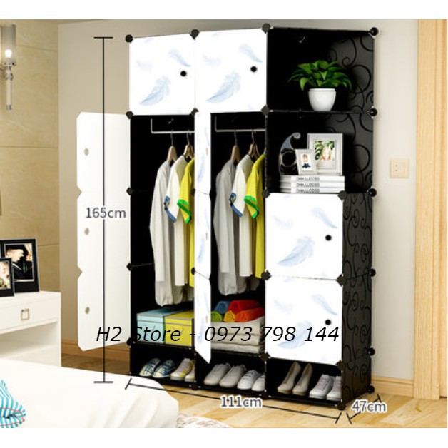 TỦ NHỰA LẮP GHÉP THÔNG MINH 12 Ô & 3 Ô GIÀY ( 2 KỆ GÓC ) ĐỂ TREO ĐỒ ĐA NĂNG SIZE TO ( TÙY CHỌN MẪU )- Kích thước sau khi lắp: cao 1m65, ngang 1m10, sâu 47cm