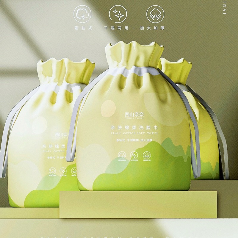 Giới thiệu MẪU MỚI Túi Khăn Lau Mặt Khô Cottton Cao Cấp Dùng 1 Lần XISHAN NAINAI Xanh Bơ Khăn Mặt Tẩy Trang Đa Năng Cuộn Khăn Rút