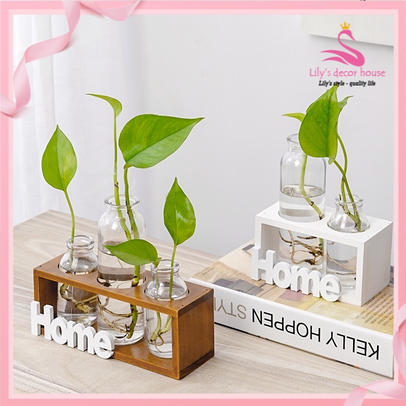 Tên sản phẩm: Bình Hoa Thủy Tinh Home Đơn Giản trồng Cây Thủy Canh Cắm Hoa decor Trang Trí bàn làm việc phòngChất liệu: khung gỗ và lọ thủy tinh