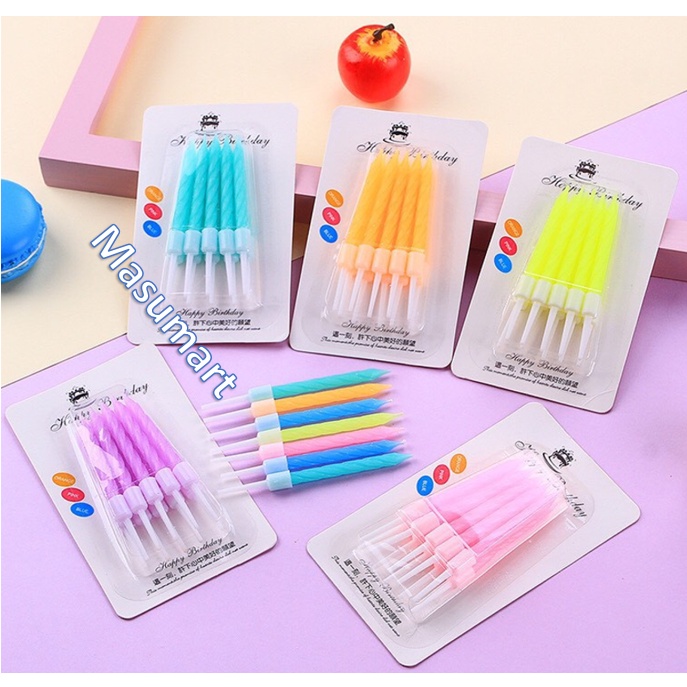 [Màu Ngẫu Nhiên] Vỉ 10 Nến Cắm Trang Trí Bánh Sinh Nhật - Nến Trang Trí Bánh Kem