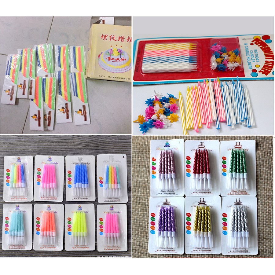 Giới thiệu [Màu Ngẫu Nhiên] Vỉ 10 Nến Cắm Trang Trí Bánh Sinh Nhật - Nến Trang Trí Bánh Kem