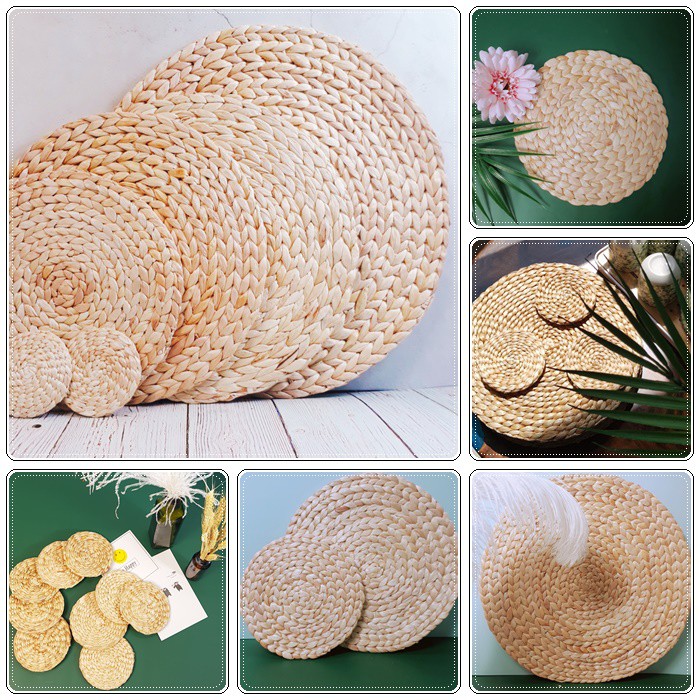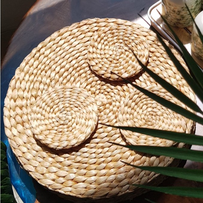Nhà cửa & Đời sống > Bộ đồ bàn ăn > Khay, tấm lót bàn ăn || (MÀU SÁNG_DÀY_CHẮC) Thảm Cói Tròn 20cm, 30cm phụ kiện trang trí chụp ảnh. tấm lót cách nhiệt thảm lục bình decor bàn ănCòn hàng