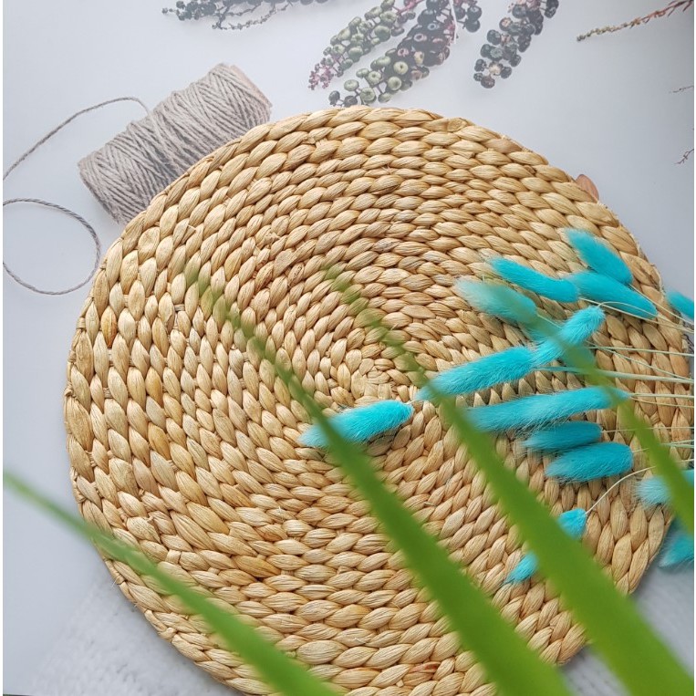 (MÀU SÁNG_DÀY_CHẮC) Thảm Cói Tròn 20cm, 30cm phụ kiện trang trí chụp ảnh. tấm lót cách nhiệt thảm lục bình decor bàn ăn👉 Chất liệu : Được làm từ cây lục bình.