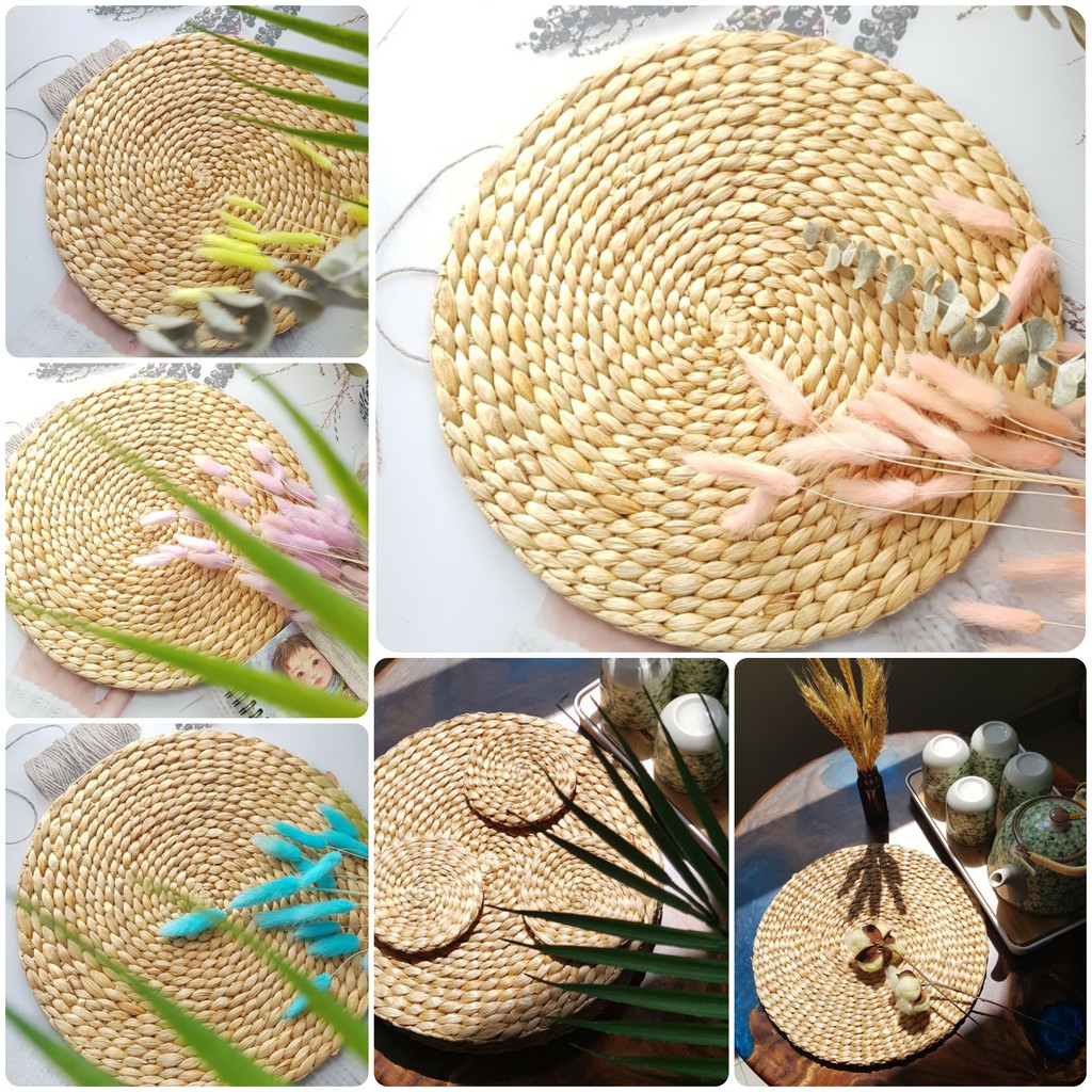 Giới thiệu (MÀU SÁNG_DÀY_CHẮC) Thảm Cói Tròn 20cm, 30cm phụ kiện trang trí chụp ảnh. tấm lót cách nhiệt thảm lục bình decor bàn ăn