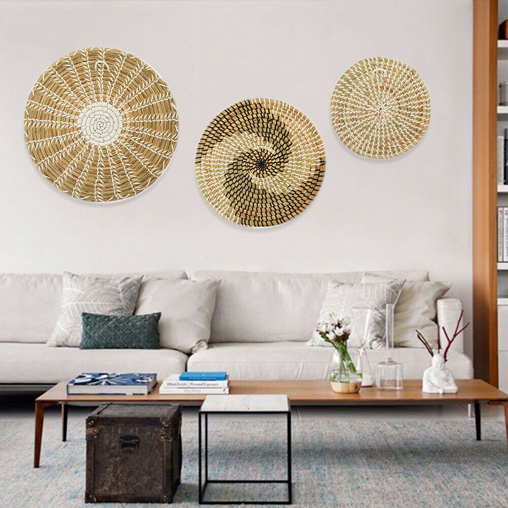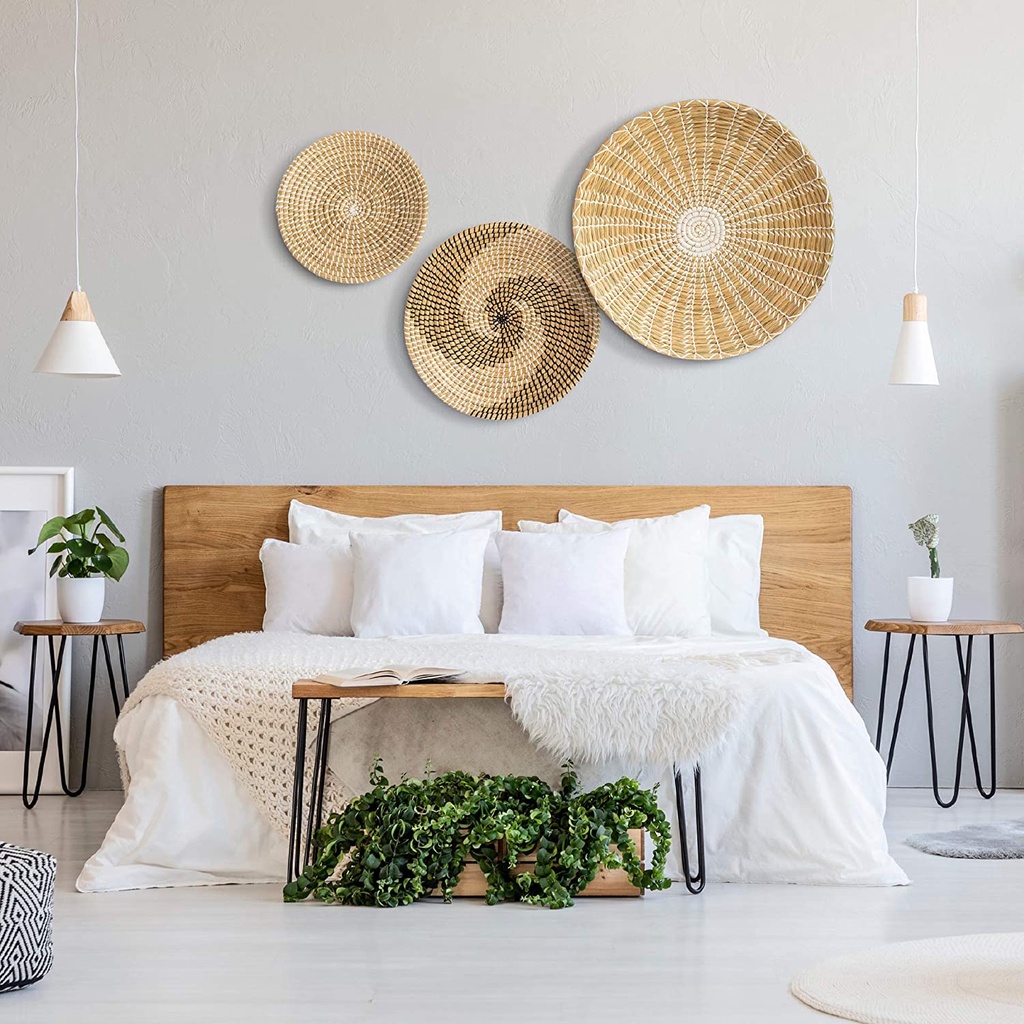 trang trí cho phòng khách hoặc phòng ngủ, Nghệ thuật treo tường độc đáoBộ giỏ cói đan bằng tay