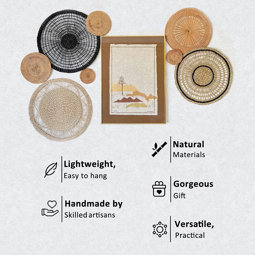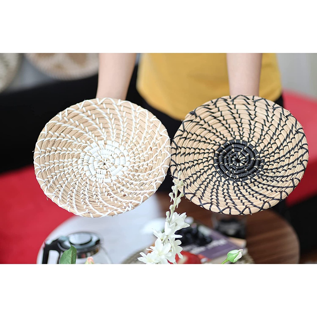 Bộ đĩa cói treo tường tạo không gian thanh lịch, ấm cũng, phù hợp với quán cà phê, homestay, nhà chung cư ...