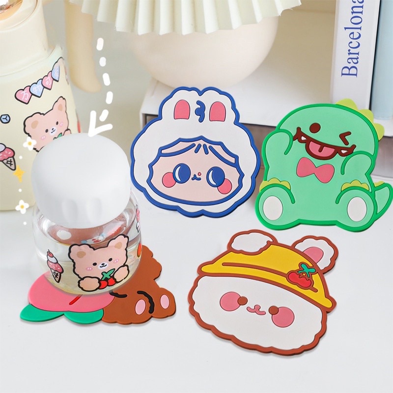Giới thiệu [Nhiều Mẫu] Tấm Lót Ly chống nước bằng silicon cách nhiệt hoạ tiết cute dễ thương - Miếng lót ly