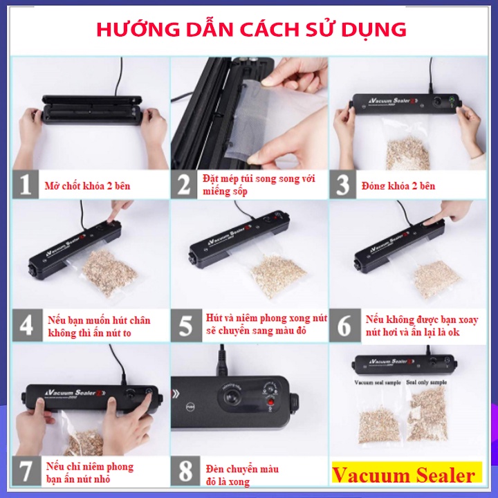 👉 Cách sử dụng: Sản phẩm tiện dụng cho gia đình và rất dễ sử dụng, chưa đầy 15 giây là bạn đã có thể đóng gói sản phẩm tốt nhất.
