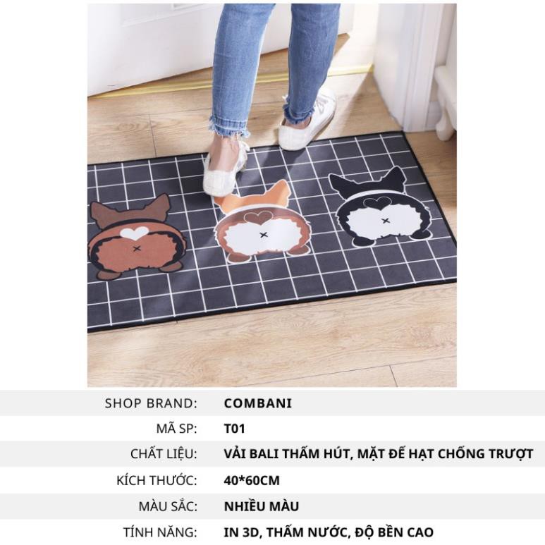 Giới thiệu (Chọn mẫu) Thảm Lau Chân 3D Cao Cấp Thấm Nước Chống Trượt KT 40x60cm - COMBANI T01