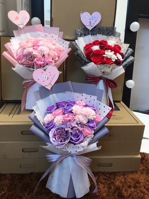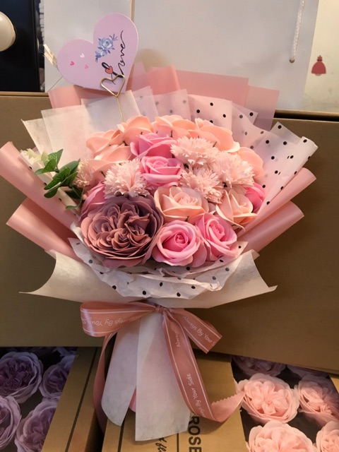 Nhà cửa & Đời sống > Trang trí nhà cửa > Hoa trang trí || [Mẫu Thiết Kế - Freeship] Bó hoa sáp VIP: Hồng Juliett mix Cẩm chướng, Tú cầu, hồng VIP. Nội thành HN đặt NowShip.Còn hàng